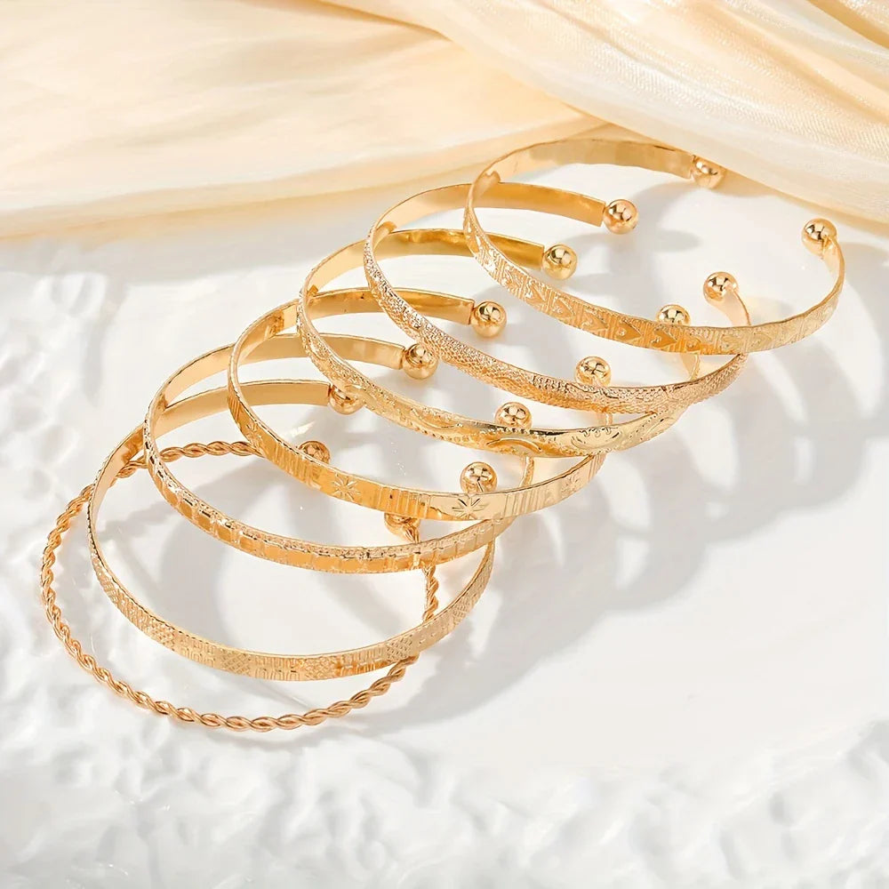 Shine with cosmic grace in the CELESTINA AURA™ Bracelet Set — a 7-piece collection of gleaming metal bracelets featuring intricate twist designs and delicate six-pointed star details. Whether you're layering them for bold elegance or wearing a single piece for minimalist sparkle, this set adds a luminous touch to every outfit.